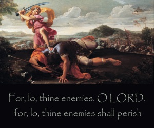 Goliath, the Philistine, was the enemy of God. When the Philistines gathered together their armies to battle against the children of Israel, the bible says, “The Philistines stood on a mountain on the one side, and Israel stood on a mountain on the other side: and there was a valley between them.” (1 Sam 17:3) There was a valley between the children of God and the enemies of God. The carnal mind is the valley that separates the children of God and the enemies of God. If you do not cross that valley now, in this life, on this earth, you will never cross it in eternity. In Luke 16, Abraham with Lazarus in his bosom, said to the rich man that was in hell, in torments, tormented in the flame, “Between us and you there is a great gulf fixed: so that they which would pass from hence to you cannot; neither can they pass to us, that would come from thence.” (Luke 16:26) It will not end well for the enemies of God. David said to Goliath, “This day will the LORD deliver thee into mine hand; and I will smite thee, and take thine head from thee; and I will give the carcases of the host of the Philistines this day unto the fowls of the air and to the wild beasts of the earth; that all the earth may know that there is a God in israel.” (1 Sam 17:46)